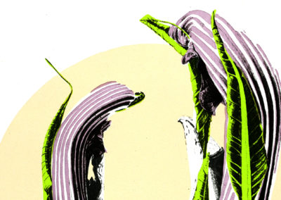 I grew a number of Arisaema in pots and eagerly waited for them to pop their shoots so that I could see what I was going to be able to illustrate. I am absolutely in love with Japanese ink paste and the effects that I can get with it depicting the silhouettes and patterns, and really relish the moments when I see my plants in a captivating shape that I think will work for this series.
